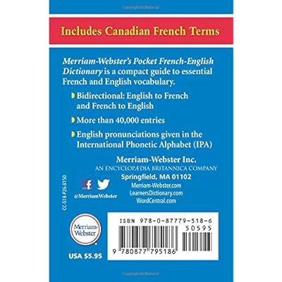 New! A bilingual, bi-directional compact guide to essential French and English vocabulary, More than 40,000 entries include coverage of Canadian French terms. English pronunciations given in the International Phonetic Alphabet (IPA). Special sections including conjugation of French verbs.